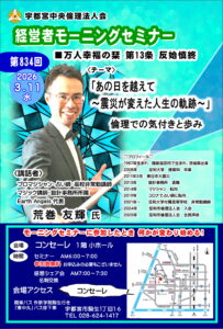 2024年9月4日(水) 第758回 講師:郡司 成江 2024 8/22 セミナー 2024年8月22日 セミナー 【9月】モーニングセミナーのご案内 2024年9月11日(水) 第759回 講師:佐藤 英夫 関連記事 2025年12月24日(水) 第825回 講師:杉田 孝子 2025年12月4日 2025年12月17日(水) 第824回 講師:安食 弘幸 2025年12月4日 2025年12月10日(水) 第823回 講師:井岡 秋夫 2025年12月4日 2025年12月3日(水) 第822回 講師:長谷部 貴 2025年12月4日 2025年11月26日(水) 第821回 講師:磯田 信彦 2025年10月27日 2025年11月19日(水) 第820回 講師:高木 和博 2025年10月27日 2025年11月12日(水) 第819回 講師:上田 輝一 2025年10月27日 2025年11月5日(水) 第818回 講師:太田 みか子 2025年10月27日