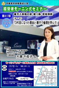 2024年9月18日(水) 第760回 講師:佐川 浩一 2024 8/22 セミナー 2024年8月22日 セミナー 2024年9月11日(水) 第759回 講師:佐藤 英夫 2024年9月25日(水) 第761回 講師:三井 美紀 関連記事 2025年11月26日(水) 第821回 講師:磯田 信彦 2025年10月27日 2025年11月19日(水) 第820回 講師:高木 和博 2025年10月27日 2025年11月12日(水) 第819回 講師:上田 輝一 2025年10月27日 2025年11月5日(水) 第818回 講師:太田 みか子 2025年10月27日 2025年10月29日(水) 第817回 講師:大濱 千佐子 2025年10月26日 2025年10月22日(水) 第816回 講師:伊藤 一嘉 2025年9月30日 2025年10月15日(水) 第815回 講師:塩田 敏之 2025年9月30日 2025年10月8日(水) 第814回 講師:五十嵐 薫 2025年9月30日