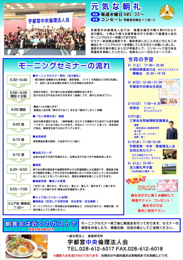 【3月】モーニングセミナーのご案内